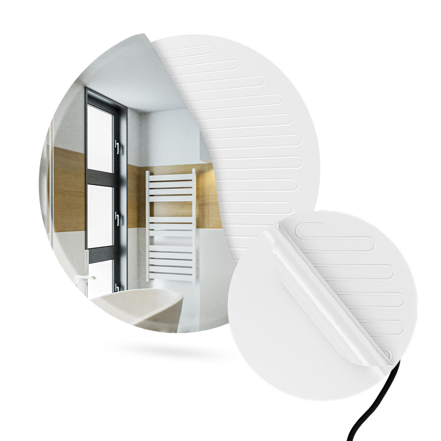 Foil pemanas dipasang tepat di belakang cermin. Saat lampu dinyalakan, foil pemanas akan aktif secara otomatis dan memanaskan cermin hingga suhu yang mencegah penumpukan uap air.